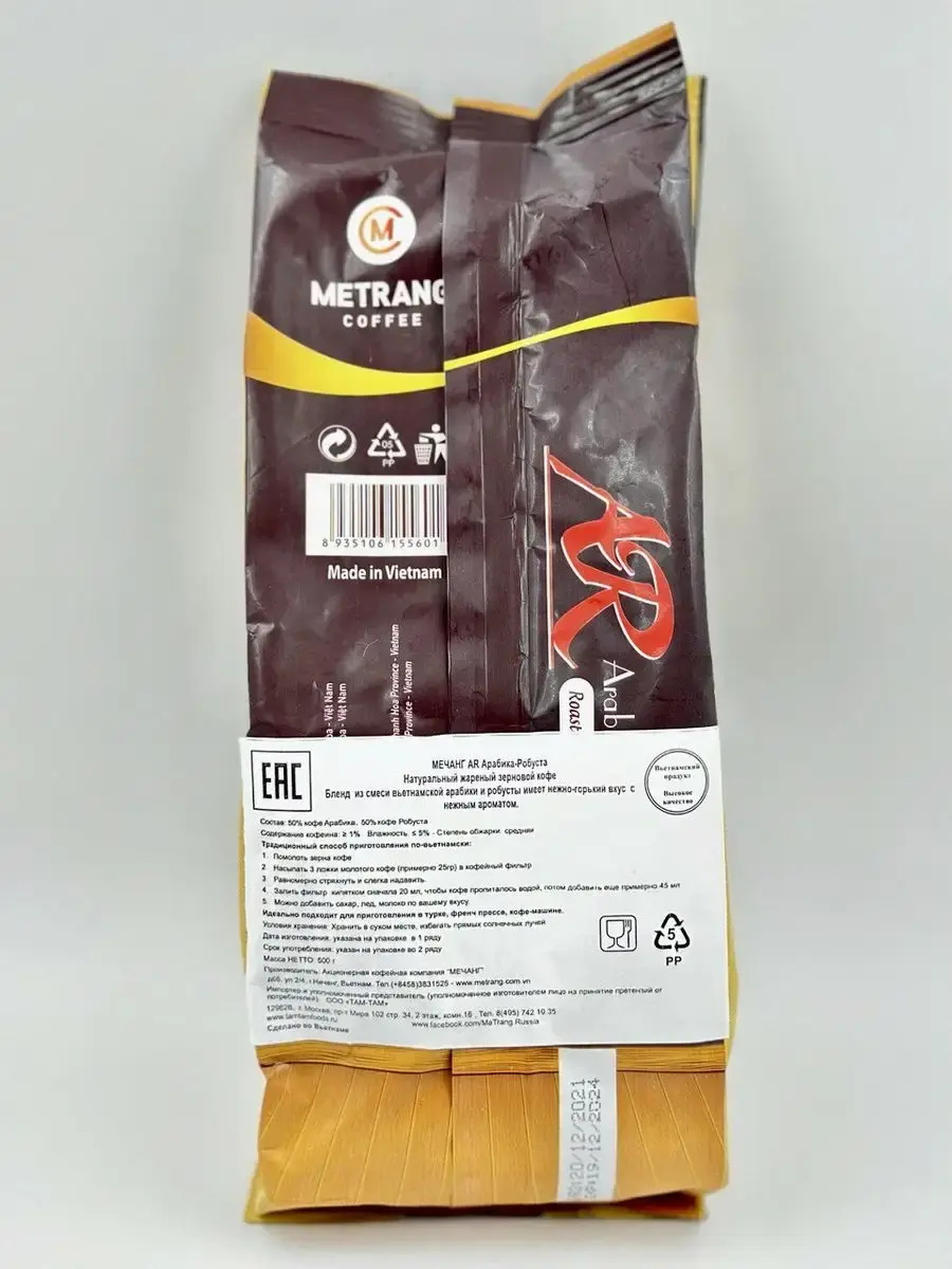 Погрузитесь в настоящий вьетнамский кофейный опыт с магическим блендом Arabica & Robusta от бренда Me Trang. В каждой упаковке 500 грамм чистой радости, созданной мастерами кофейного искусства.