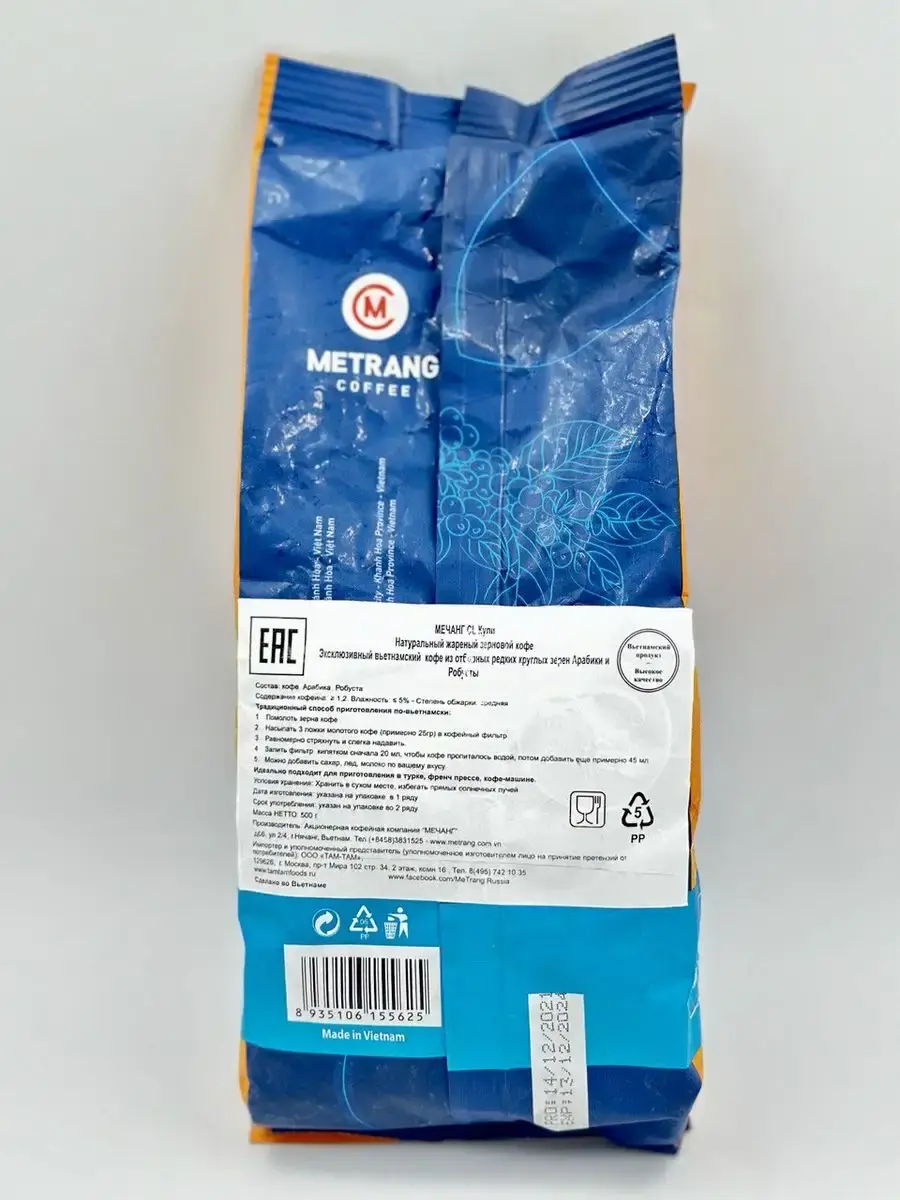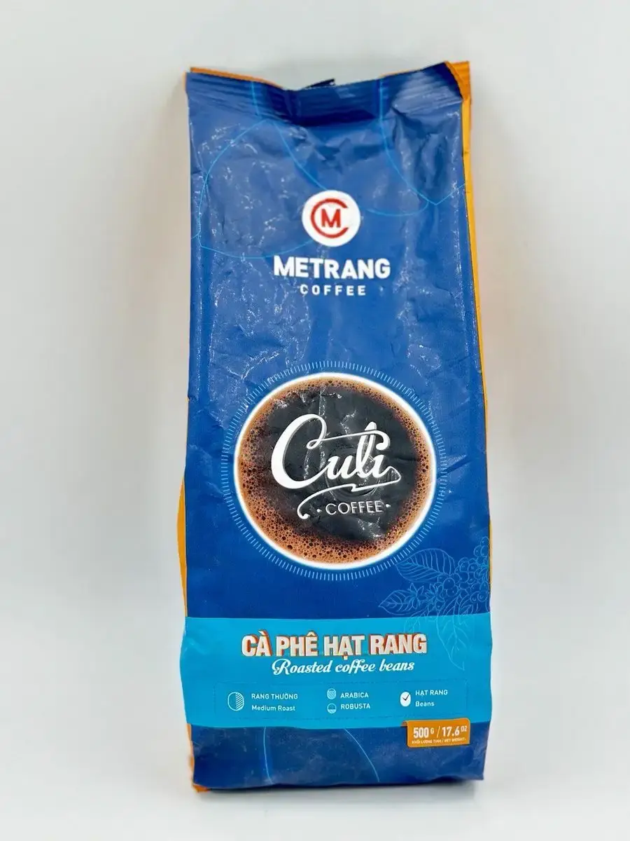 Представляем вам вдохновение из Вьетнама — зерновой кофе Me Trang Culi. В каждой упаковке 500 грамм ваших самых ярких кофейных моментов, созданных с уникальной смесью Арабики и Робусты.