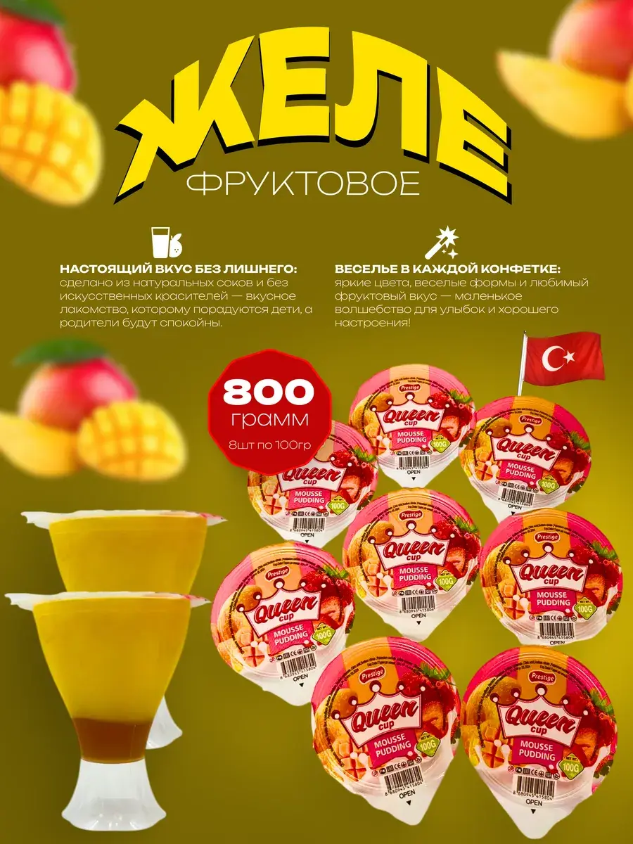 Ароматное манговое желе от турецкого бренда Prestige — экзотическое наслаждение в каждом стаканчике. В упаковке вы найдёте 8 порций по 100 грамм нежного желе с насыщенным тропическим вкусом спелого манго. Удобные индивидуальные стаканчики с ложечками позволяют наслаждаться десертом где угодно — дома, на работе или на природе. Изготовленное из отборных ингредиентов, это желе с солнечным вкусом манго станет идеальным завершением трапезы, полезным перекусом или изысканным угощением для гостей. Prestige сочетает в этом десерте натуральность вкуса, удобство и безупречное качество.