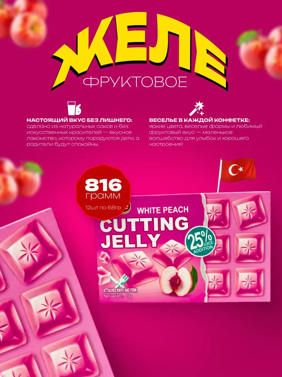 Желе со вкусом персика от турецкого производителя Prestige – это нежный и сочный десерт в форме шоколадной плитки. Каждая упаковка содержит 12 порций по 68 грамм, а для удобства использования внутри есть нож и вилка. Насладитесь ярким вкусом спелого персика в удобном и оригинальном формате. Желе Prestige – идеальный выбор для любителей необычных сладостей и ценителей качественных десертов.