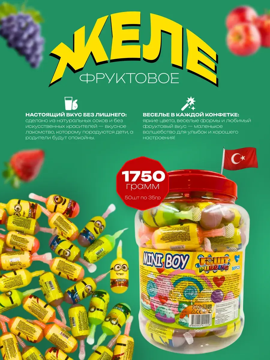 Этот набор фруктового желе станет прекрасной альтернативой обычным сладостям и обязательно вызовет восторг у детей. Благодаря разнообразию вкусов и удобной упаковке, продукт идеально подходит для оформления праздничных столов, приготовления сладких подарков или использования в качестве призов для детских конкурсов.
