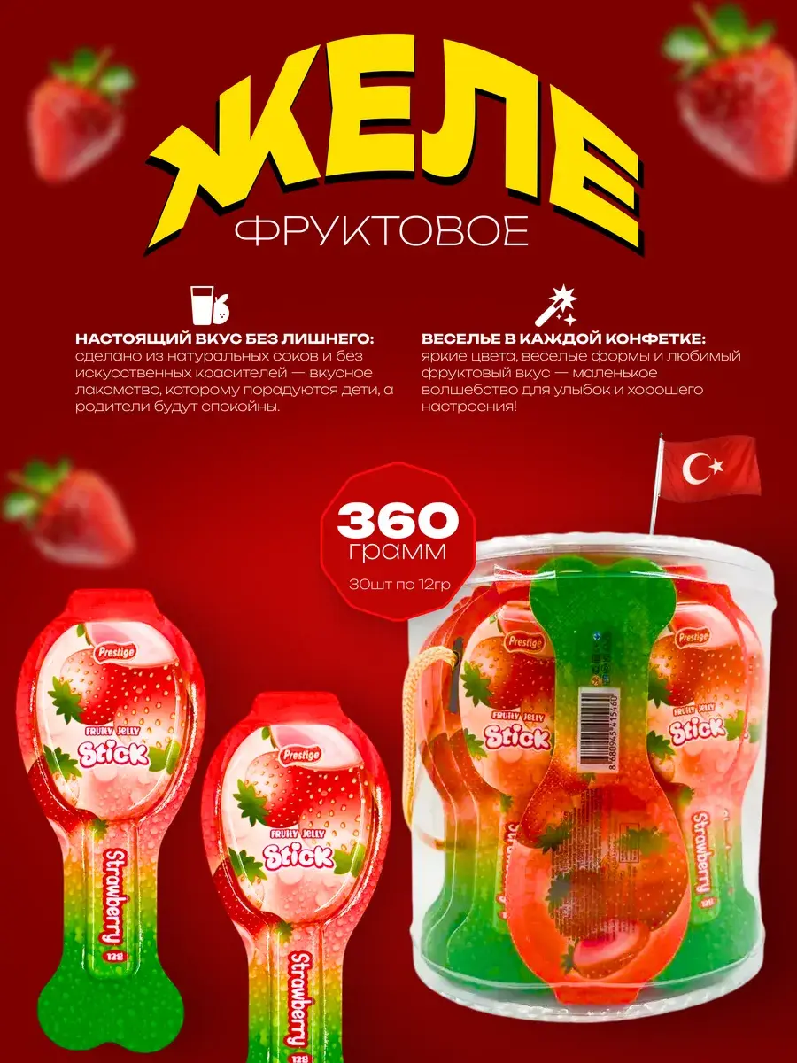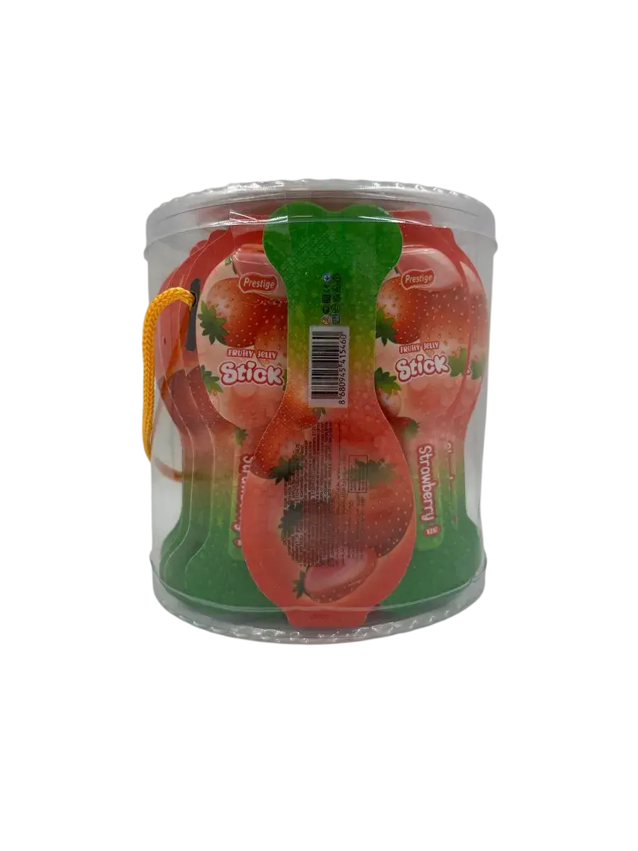 Попробуйте желейные конфеты на палочке со вкусом клубники от Prestige - нежное лакомство, которое подарит мгновения сладкого удовольствия и детям, и взрослым!