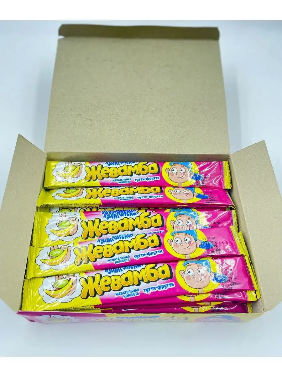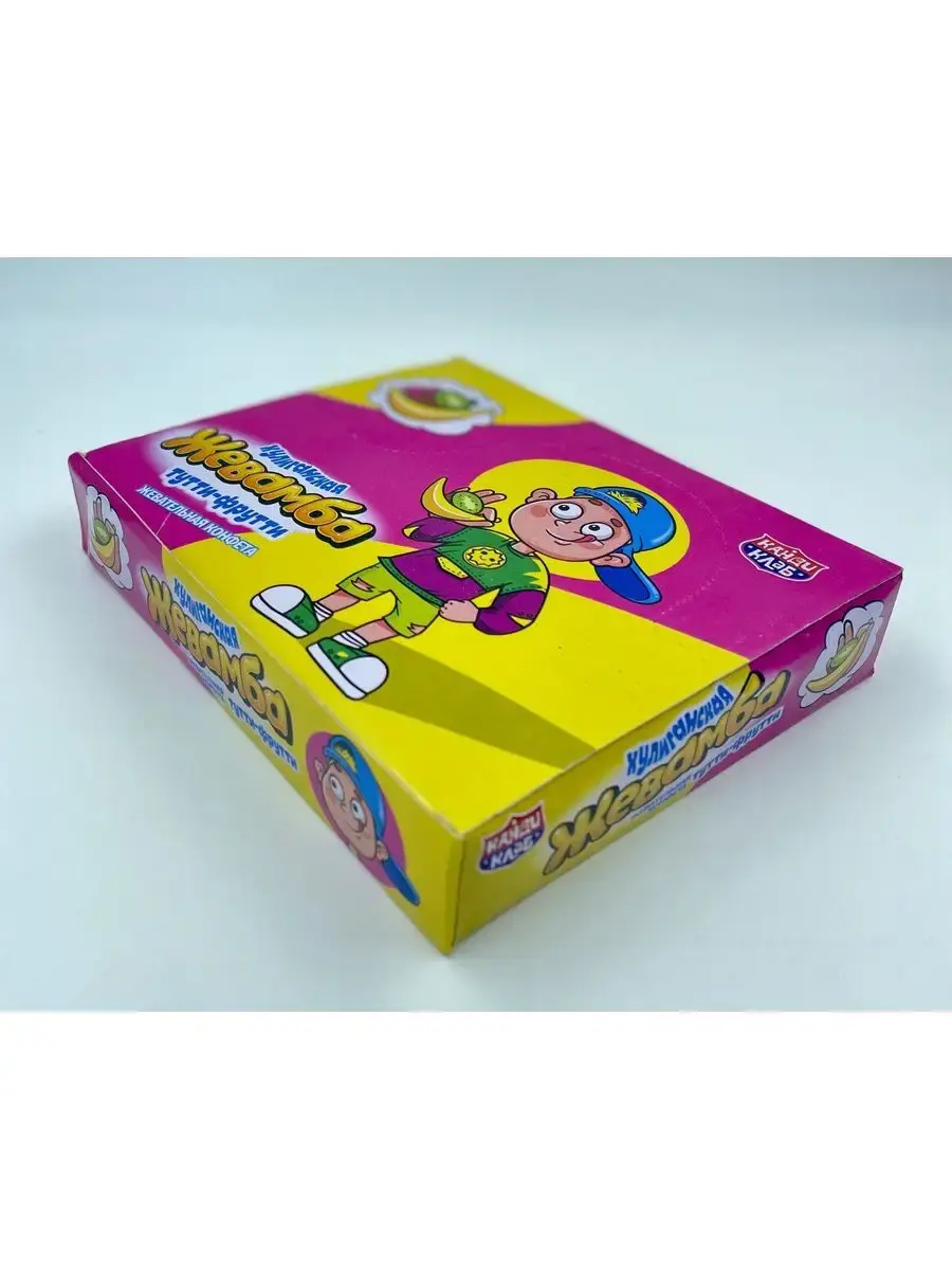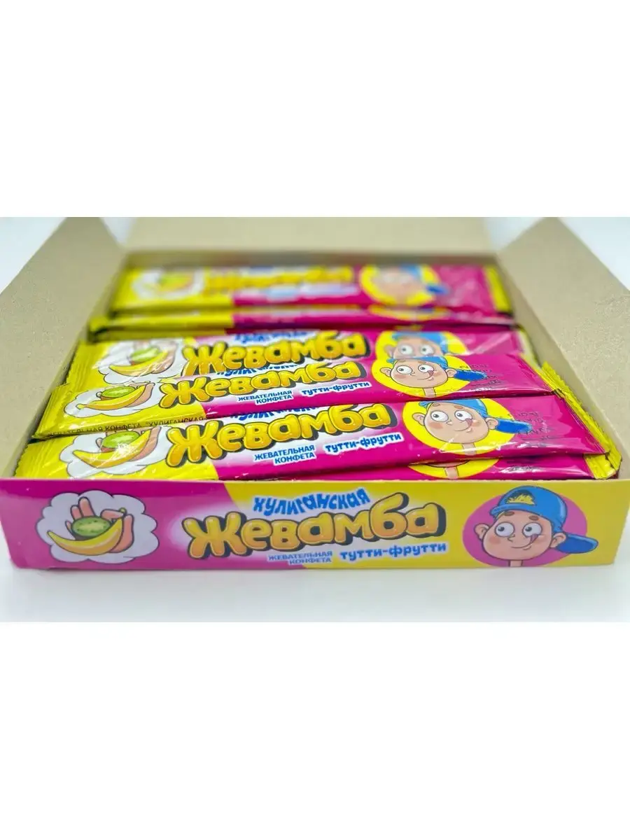 Предлагаем жевательные конфеты "ХУЛИГАНСКАЯ ЖЕВАМБА" вкус: апельсин, тутти-фрутти, клубника, кола в мягкой упаковке. Жевательные конфеты в коробках порадуют детей и взрослых. Подарочные детские наборы сладостей расфасованы в коробки 24 конфеты. Жевательная конфета Хулиганская Жевамба -набор жевательных конфет, которых хватит на всех: в наборе сразу 24 шт. по 12 г. Блок отлично подходит для школьных мероприятий, утренников в детских садах и других событий. Коробку жевательных конфет можно подарить на день рождения и любой другой праздник.