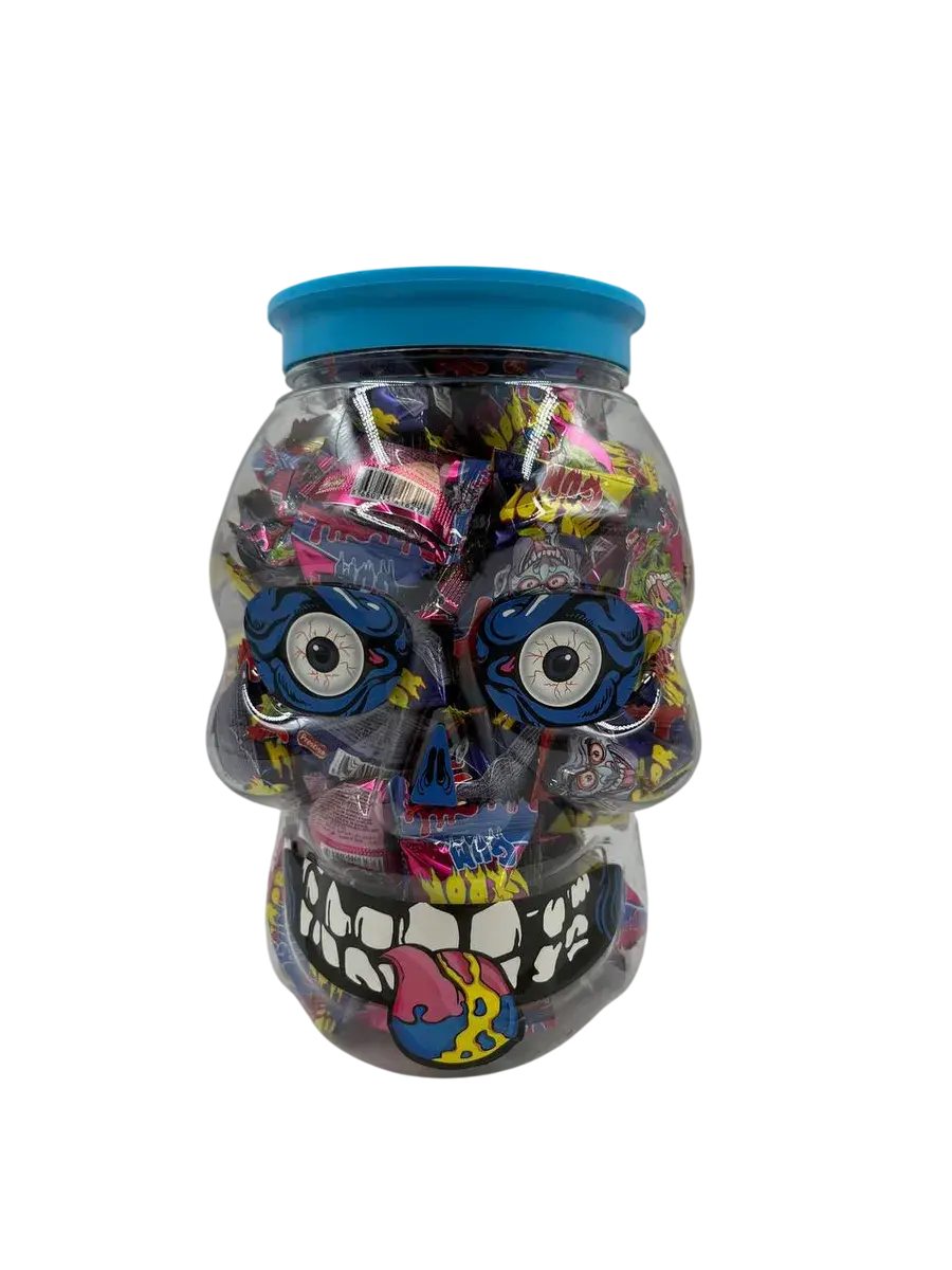 Особенность этой жвачки – контрастное сочетание сладкого мультифруктового вкуса с интенсивной кислой начинкой, которая создает неожиданный вкусовой эффект. Продукт представлен в оригинальной банке, выполненной в форме черепа монстра, что делает его привлекательным для коллекционеров и ценителей нестандартного дизайна.