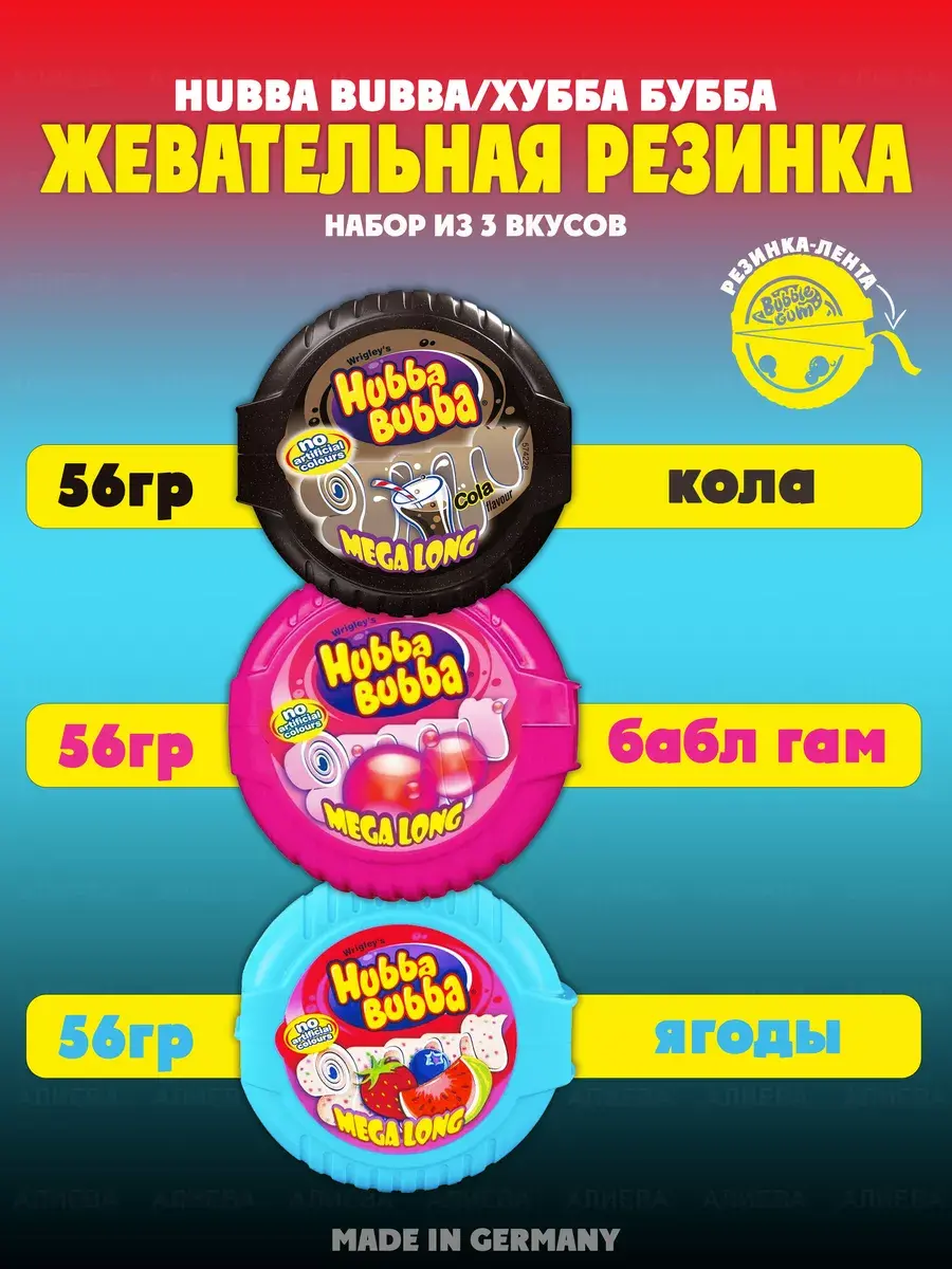Легендарная жвачка Hubba Bubba возвращается с новыми вкусами! Окунитесь во вкус детства с новой жвачкой-лентой Хуба Буба. Ее размеры достигают целых 180 см. Надувайте самые большие пузыри. Бодрящий вкус подарит невероятные эмоции.