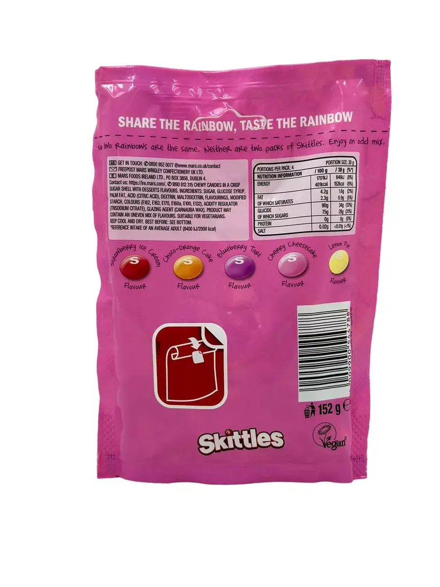 Удовлетворите своих сладкоежек этими веганскими конфетами со вкусом десерта Skittles. Благодаря разнообразным десертным сладостям, эта вкусная упаковка 152 г идеально подходит для закуски или угощения. Побалуйте себя опытом без чувства вины, зная, что эти вкусные веганские сладости были сделаны без каких-либо побочных продуктов животного происхождения. Вкус клубничного мороженого, аромат шоколадно-апельсина, вкус черничного пирога, вкус вишневого чизкейка, вкус лимонного пирога. Ложка не требуется! Подходит для вегетарианцев.