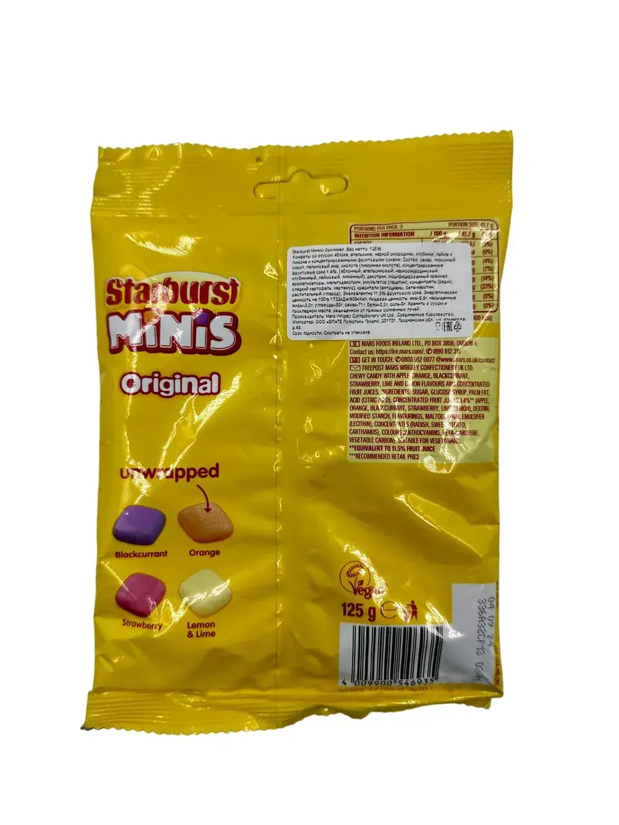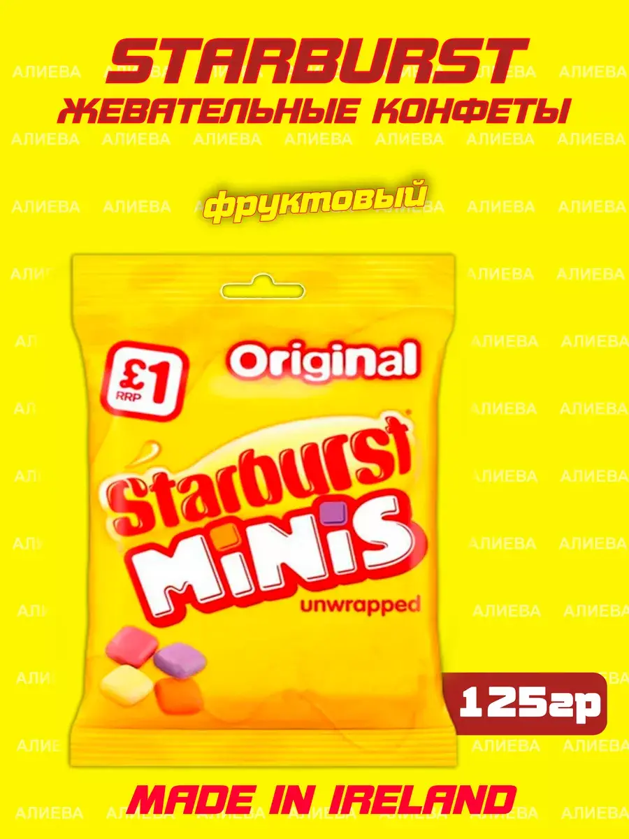 Жевательные конфеты Старберст с фруктовым соком. Starburst Original - это сочная конфета, ведь в каждой содержится 11,5% настоящего фруктового сока!