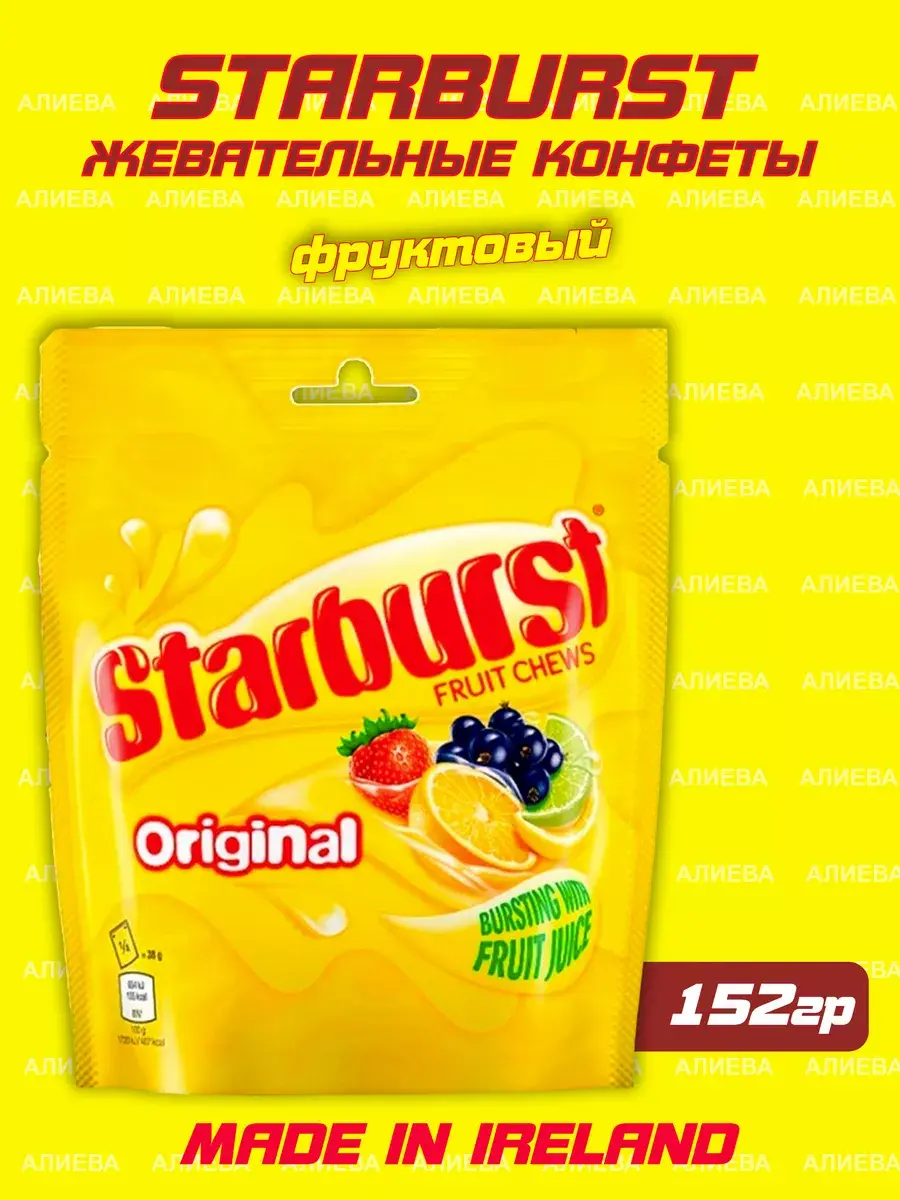 Жевательные конфеты Старберст с фруктовым соком. Starburst Original - это сочная конфета, ведь в каждой содержится 11,5% настоящего фруктового сока!
