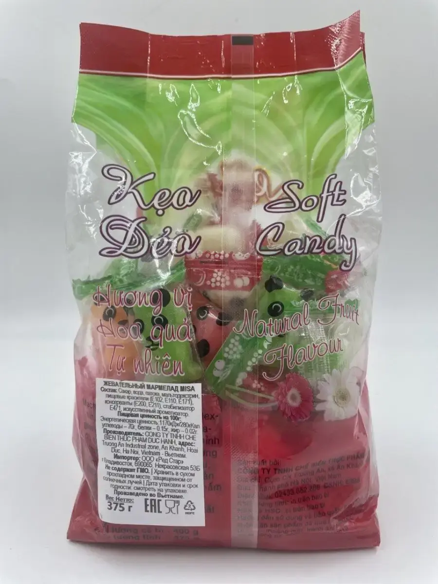 Каждый мармелад упакован в индивидуальную упаковку, что делает его идеальным для перекуса в любом месте - только свежий и вкусный мармелад, готовый к употреблению.