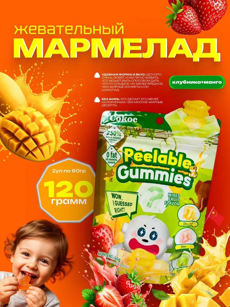 Попробуйте уникальный 3D мармелад с фигурками животных внутри! В каждой упаковке вас ждут динозавр, медведь и слон, выполненные в объемном формате. Насладитесь сочными вкусами манго, клубники и яблока, а индивидуальная упаковка каждого мармелада сохранит свежесть и удобство использования. В комплекте две упаковки с яркими и вкусными сладостями, которые порадуют детей и взрослых. Идеальный вариант для подарка или сладкого перекуса с элементом неожиданности!