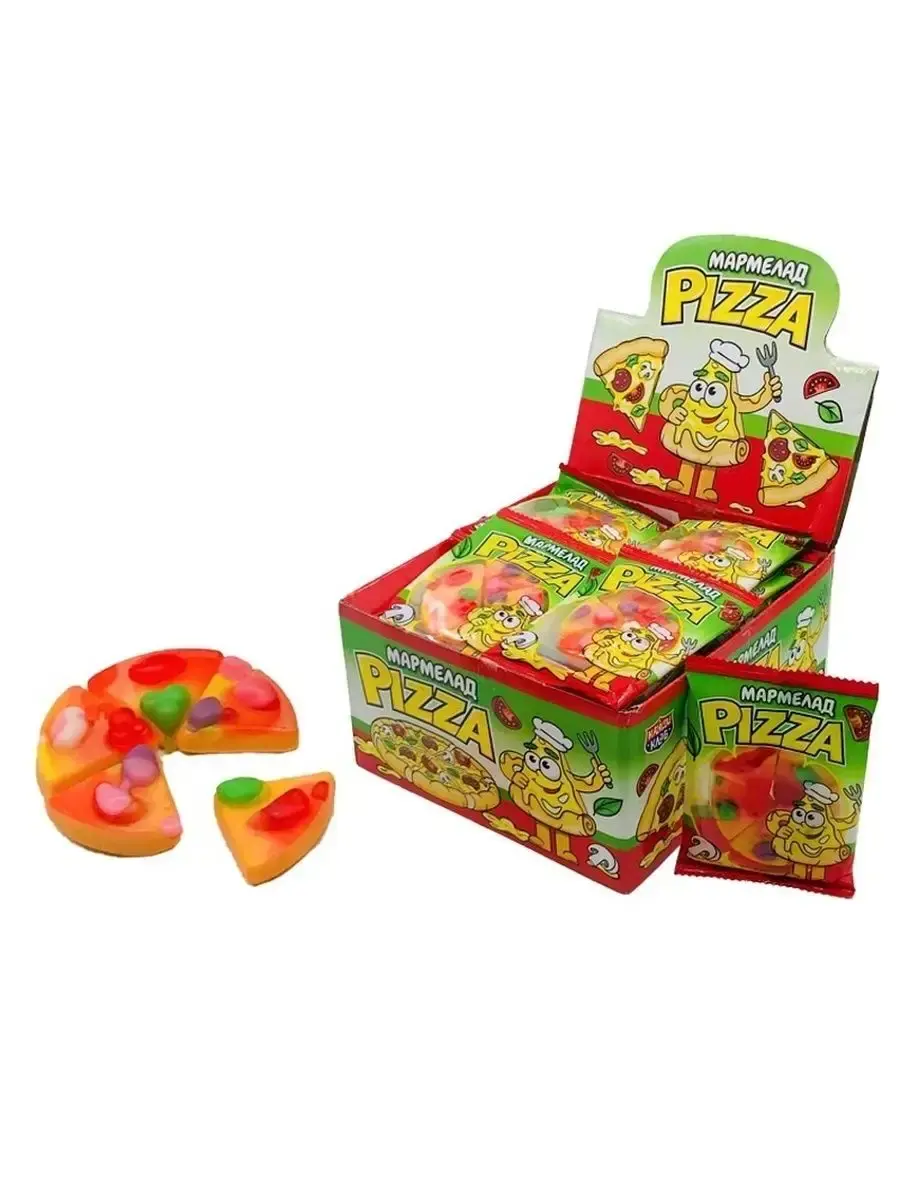 Хотите побаловать себя чем-то по-настоящему необычным? Компания «Кенди - Клаб » предлагает купить жевательный мармелад «Пицца» — десерт, поражающий ярким спектром вкусовых ощущений.Мармеладная пицца — полезная и низкокалорийная. Свежий фруктовый вкус в сочетании с аппетитным внешним видом обуславливает популярность этого лакомства как среди детей, так и взрослых.