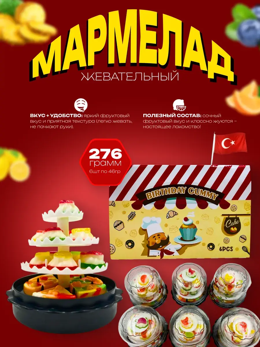 Погрузитесь в сладкий праздник с жевательным мармеладом Prestige, созданным в форме настоящего волшебного торта! Каждый такой торт радует глаз четырьмя праздничными ярусами, где на первом уровне вас ждут миниатюрные мармеладные пиццы, а верхние ярусы украшены аппетитными пирожными. В упаковке вас ждут сразу шесть готовых к веселью тортиков, каждый из которых бережно упакован индивидуально, сохраняя свежесть, форму и яркий вид для идеального подарка или сюрприза. Подарите детям и взрослым незабываемое ощущение праздника и радости с этим уникальным жевательным мармеладом от Prestige, где каждый кусочек — это маленькое торжество вкуса и фантазии.