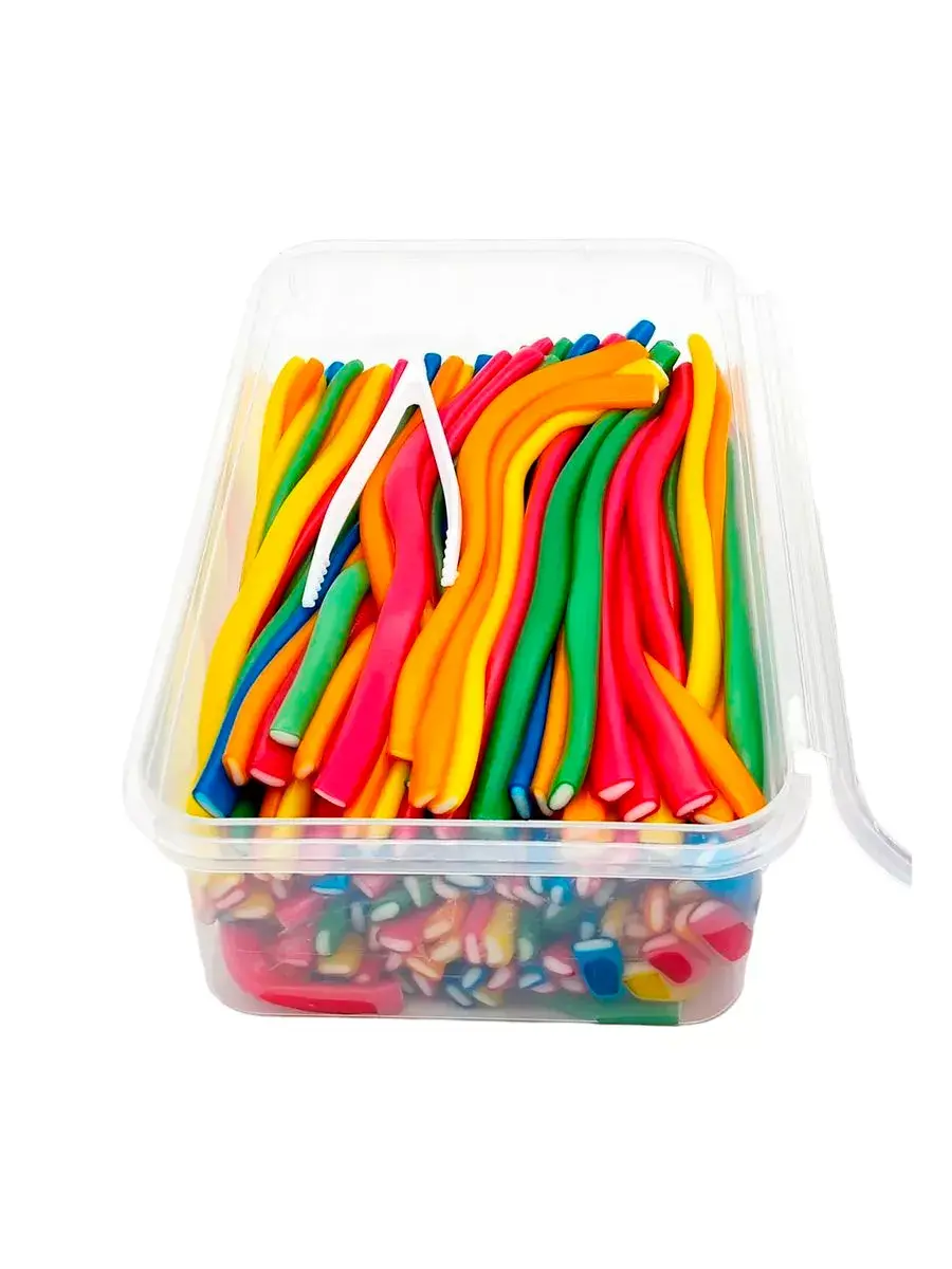 Жевательный мармелад "фруктовое ассорти" в форме трубочек 1500гр в пластиковом контейнере с крышкой от турецкого производителя мармелада компании "Jellopy".