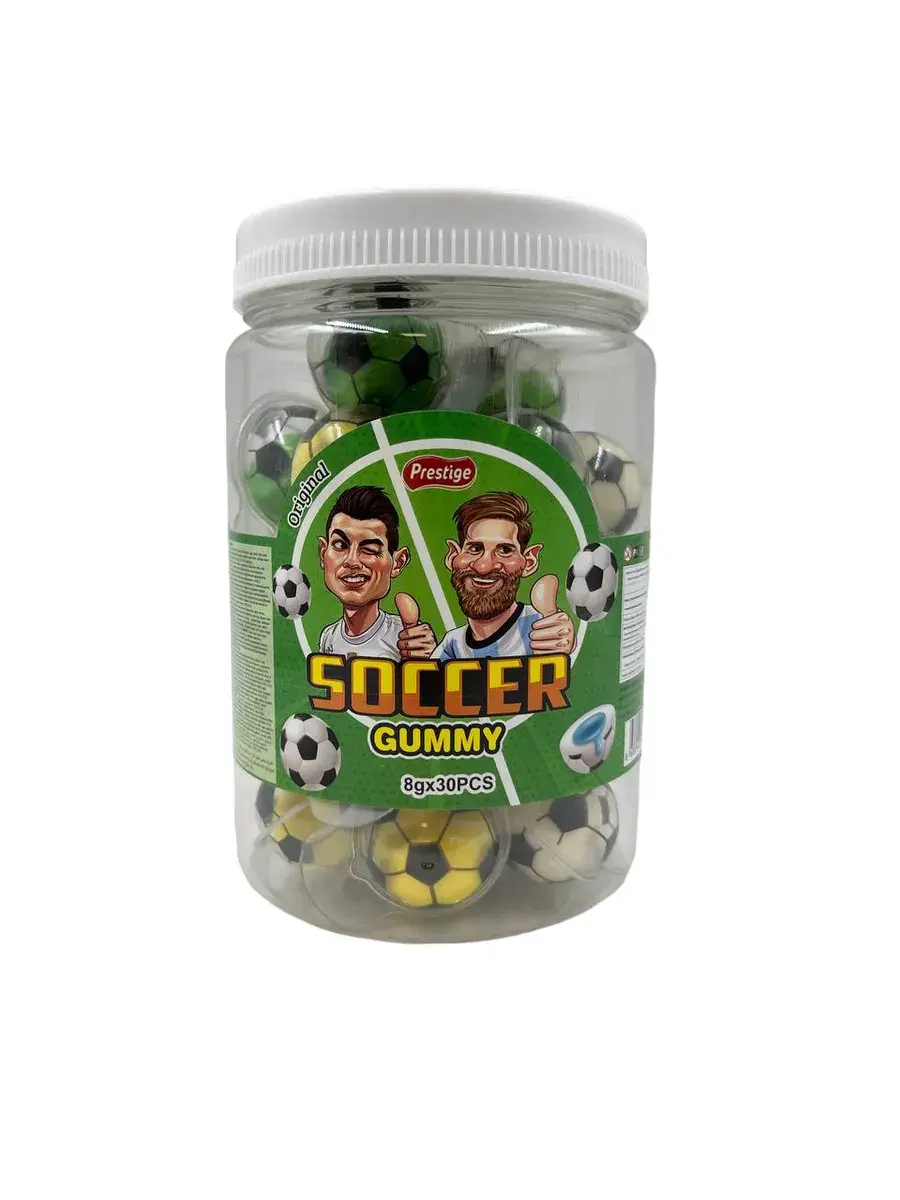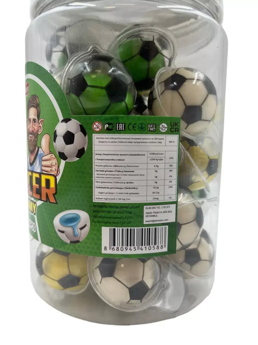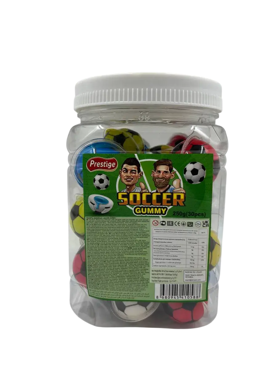 Жевательный мармелад Футбольный мяч - это вкусное лакомство для детей всех возрастов. Он имеет потрясающий вкус и необычную форму в виде футбольного мяча , и непременно понравится Вашему ребенку! Жевательный мармелад в упаковке (банка 30 штук). Подарочные наборы продуктов. Мармеладные вкусняшки приносят в качестве угощения в детский сад и школу на 14 и 23 февраля, 8 марта, выпускной и без повода, а также добавляют в новогодние гостинцы. Подарочный бокс с мармеладом будут рады получить малыши, девочки и мальчики 3, 4, 5, 6, 7, 8, 9, 10, 11, 12 лет и даже подростки! Прикольные штуки смогут порадовать близких. Вкусняшки как перекус на прогулку, в путешествие.
