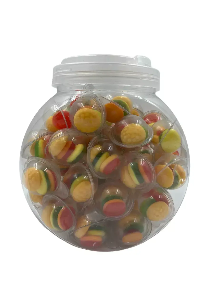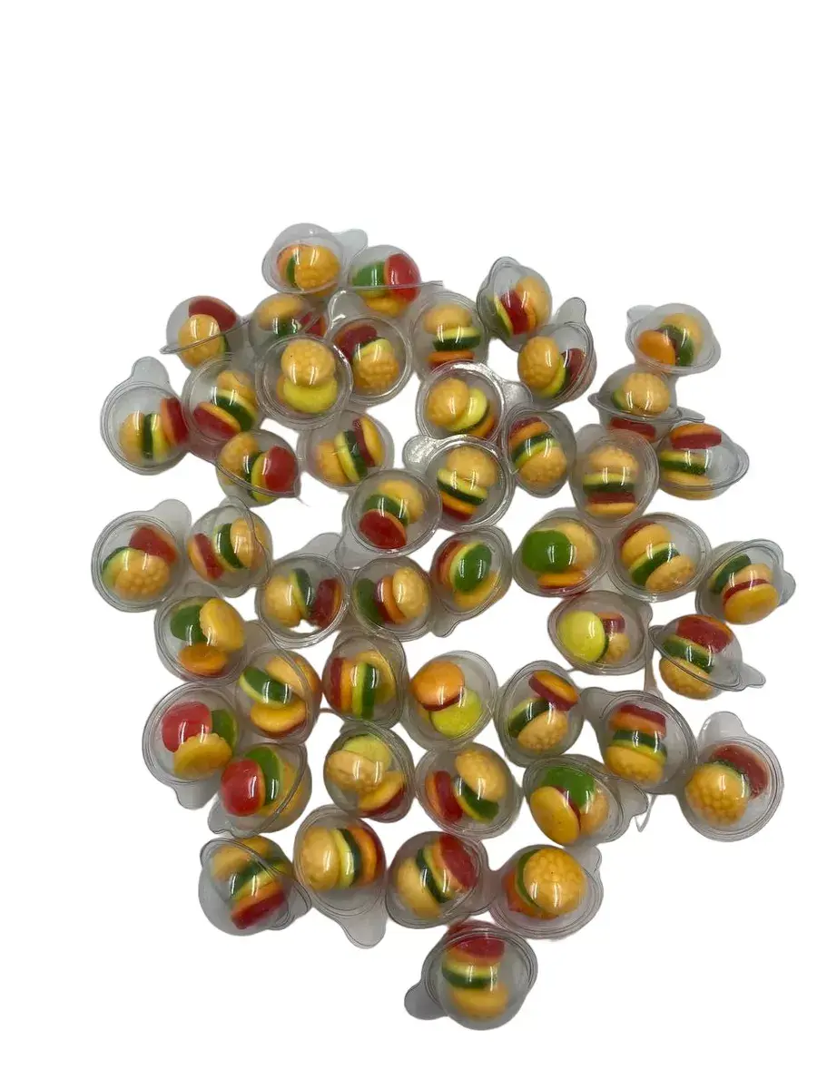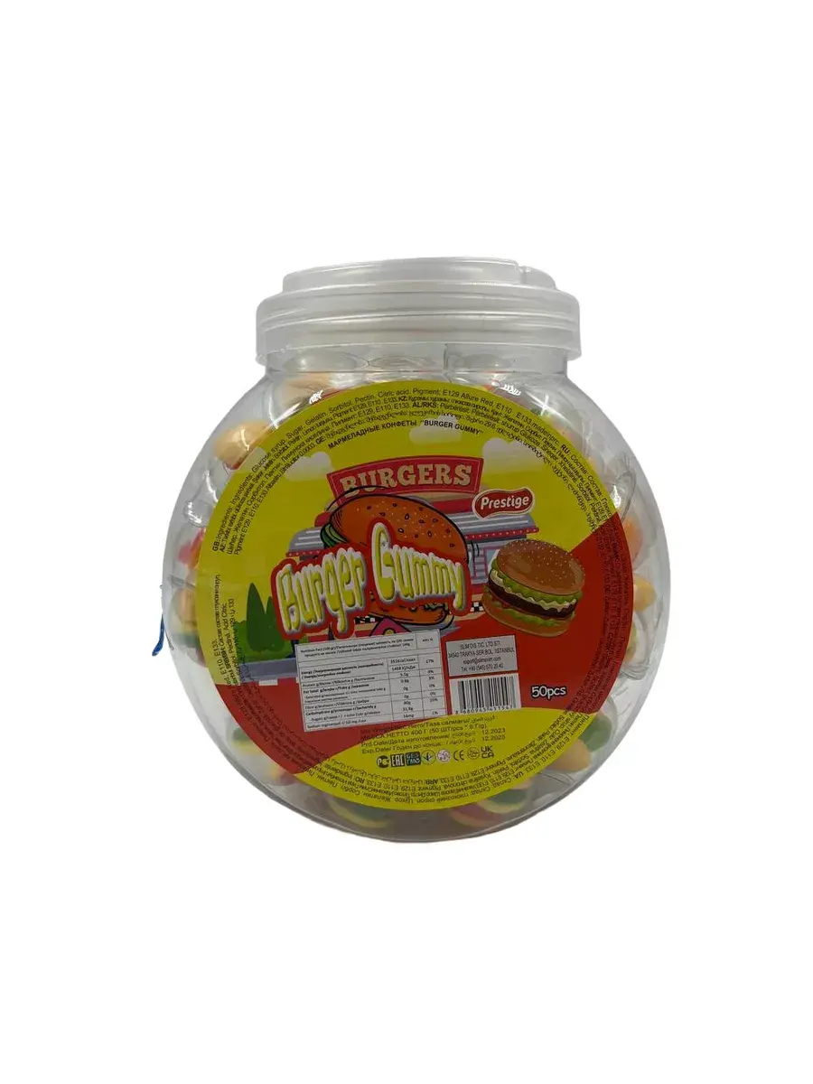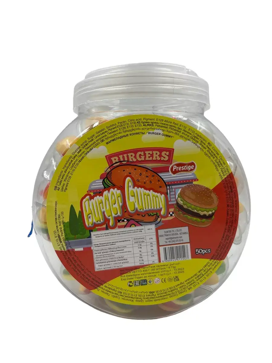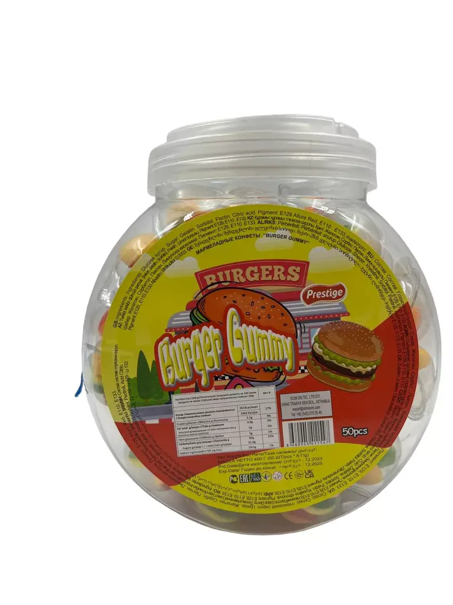 Жевательный мармелад Burger Gummy - это вкусное лакомство для детей всех возрастов. Он имеет потрясающий вкус и необычную форму в виде бургера и непременно понравится Вашему ребенку! Жевательный мармелад в упаковке (банка 50 штук). Подарочные наборы продуктов. Мармеладные вкусняшки приносят в качестве угощения в детский сад и школу на 14 и 23 февраля, 8 марта, выпускной и без повода, а также добавляют в новогодние гостинцы. Подарочный бокс с мармеладом будут рады получить малыши, девочки и мальчики 3, 4, 5, 6, 7, 8, 9, 10, 11, 12 лет и даже подростки! Прикольные штуки смогут порадовать близких. Вкусняшки как перекус на прогулку, в путешествие.