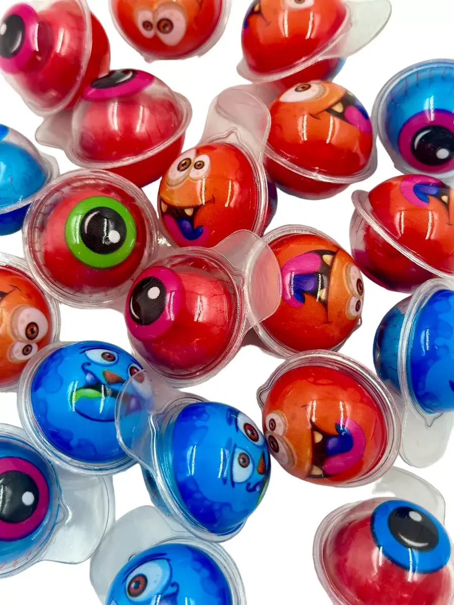 Жевательный мармелад в форме глаза и монстра - это вкусное лакомство для детей всех возрастов. Он имеет потрясающий вкус и необычную форму в виде глаза и монстра , и непременно понравится Вашему ребенку! Жевательный мармелад в упаковке (банка 30 штук). Подарочные наборы продуктов. Мармеладные вкусняшки приносят в качестве угощения в детский сад и школу на 14 и 23 февраля, 8 марта, выпускной и без повода, а также добавляют в новогодние гостинцы. Подарочный бокс с мармеладом будут рады получить малыши, девочки и мальчики 3, 4, 5, 6, 7, 8, 9, 10, 11, 12 лет и даже подростки! Прикольные штуки смогут порадовать близких. Вкусняшки как перекус на прогулку, в путешествие.