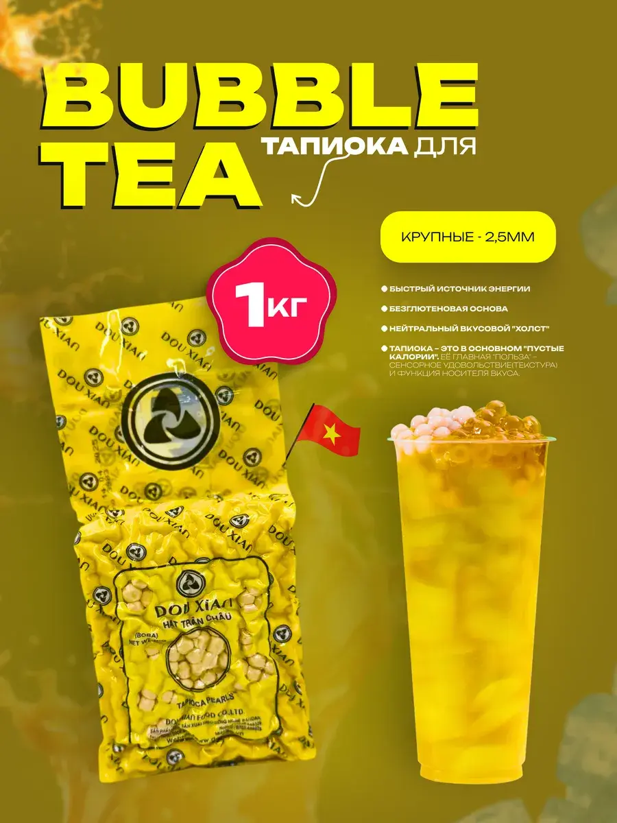 Позвольте представить наши изысканные перлы Gold Tapioca Pearls, с гордостью созданные уважаемым вьетнамским производителем. Эти жемчужины являются квинтэссенцией для приготовления восхитительного пузырькового и бочкового чая. Изготовленные из высококачественного натурального крахмала tapioca, они обеспечивают восхитительно и гладкую текстуру, новый уровень удовольствия от приготовления чая из пузырчатой пленки. Их роскошный золотой оттенок придает любому напитку очарование, делая его фантастическим выбором для кафе, чайных магазинов и восторженных домашних пивоваров. Эти жемчужины разработаны для быстрого и простого приготовления пищи, обеспечивая непревзойденную универсальность. Наши жемчужины тапиоки изготовлены без ГМО и лишены искусственных добавок, обеспечивая чистоту и качество. Эти упругие и ароматные жемчужины превращают ваши творения в чай «боба» — идеальный выбор для неизменно идеального чашечки.